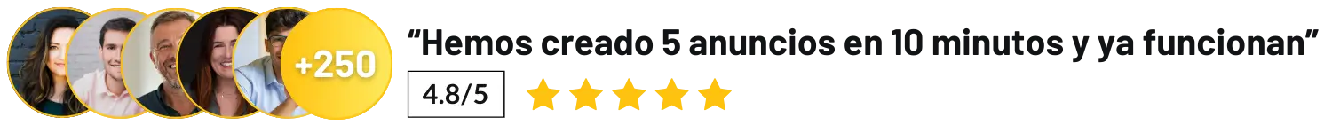 Lo conseguimos aprovechando una inteligencia artificial entrenada con BILLONES de euros en facturación real, que genera anuncios probados y altamente efectivos en una fracción del tiempo habitual.
